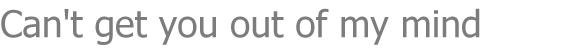 I feel the tears run down on the inside They won't put out the fire I must hide Walk my tight rope with the safety net untied It's just a schizophrenia nightmare Consume my mind and body with such flair I want it bad but I know I cant go there Cause I can't get you out of my mind I can't get you out of my mind I can't get you out of my mind No I can't get you out The more we touch the harder it hurts me The more intense my senses desert me I'm just a child in a stupid mans body Cause I can't get you out of my mind I can't get you out of my mind I can't get you out of my mind No I can't get you out Within this daze, I will concede All my emotions bleed |